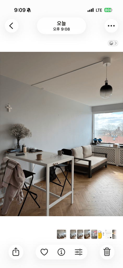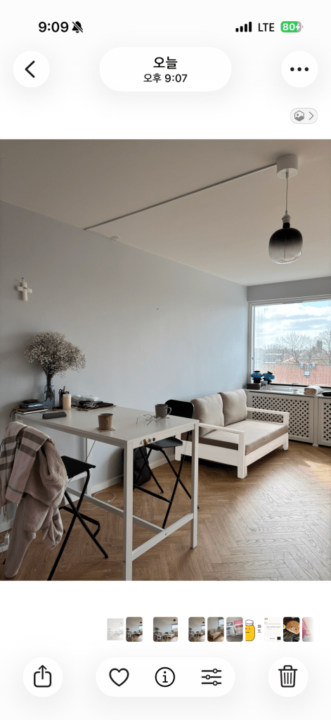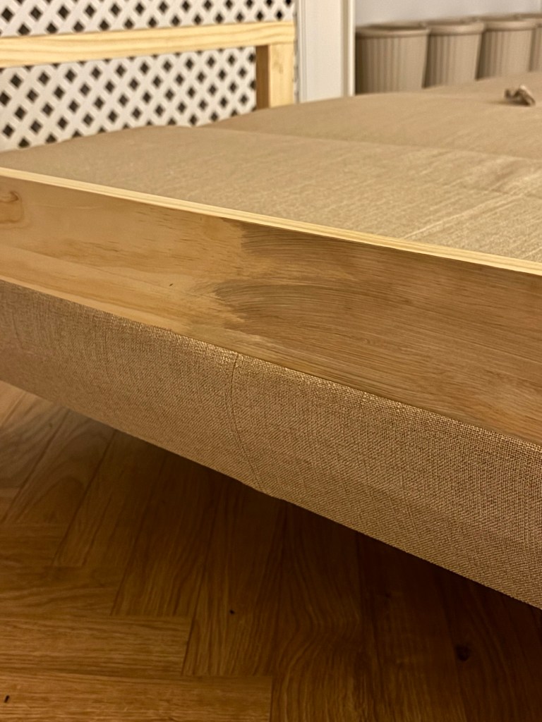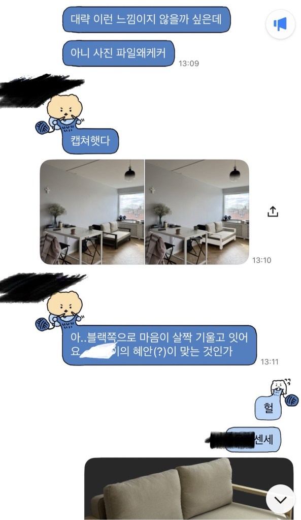 우리집의 전등과 의자 색이 검정색으로 정해지면서, 앞으로 들어올 가구들을 블랙 앤 화이트 (앤 메이플 우드) 분위기로 맞추고 싶었으나 이 소파는 프레임이 밝은 내추럴의 소나무여서 너무 이 색을 맞춰주고 싶다는 생각을 했다.